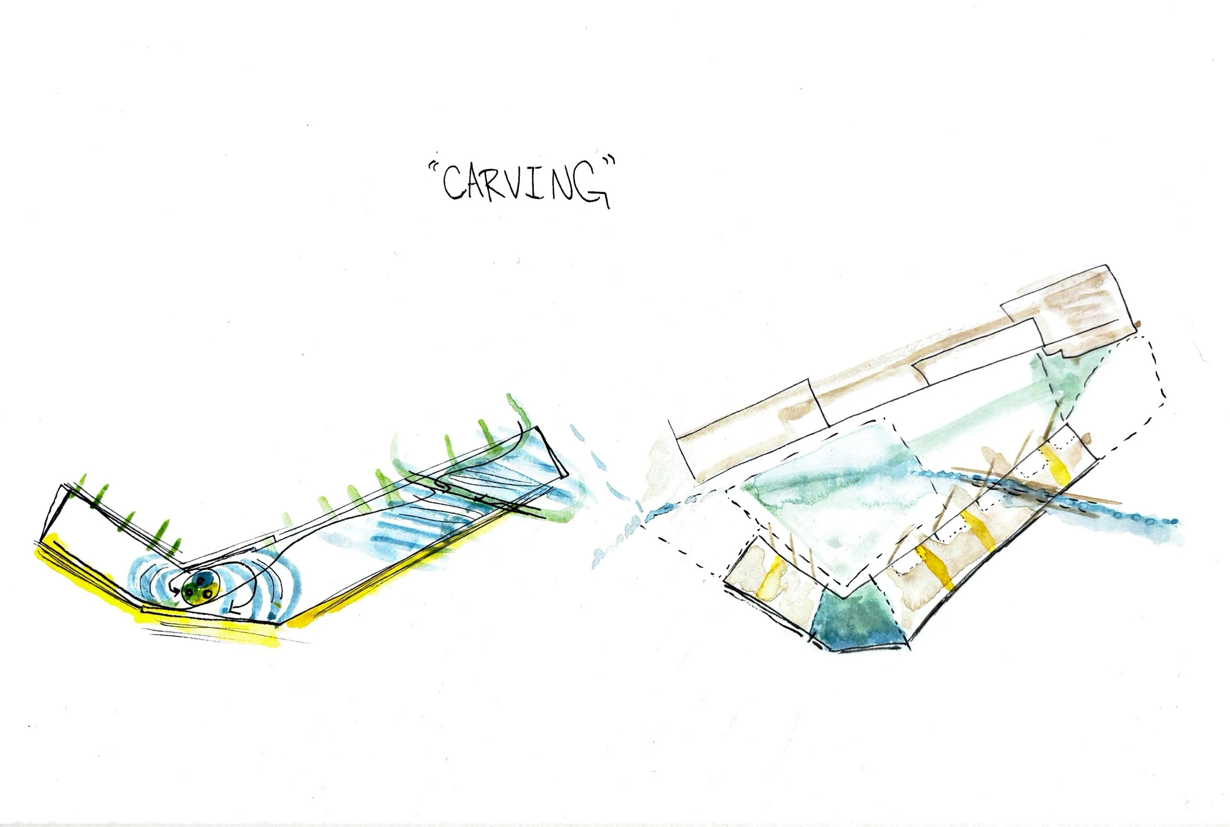 Carving apartments is a 6 story residential building with both retail spaces and apartments on the ground floor. It is a point access building with an emphasis on movement and a diversity in apartment types.